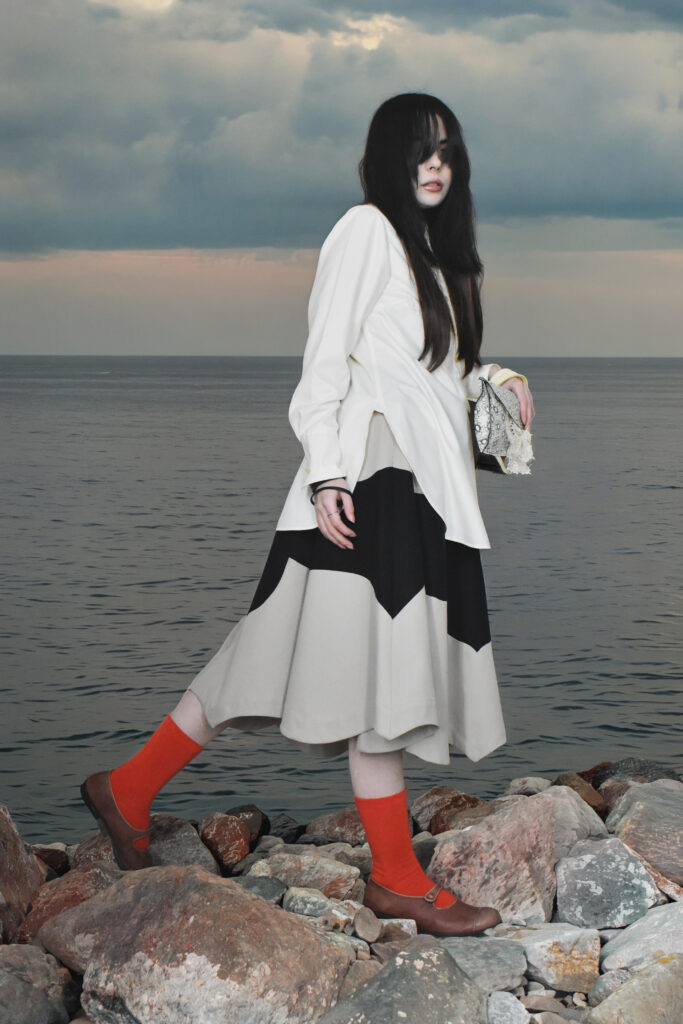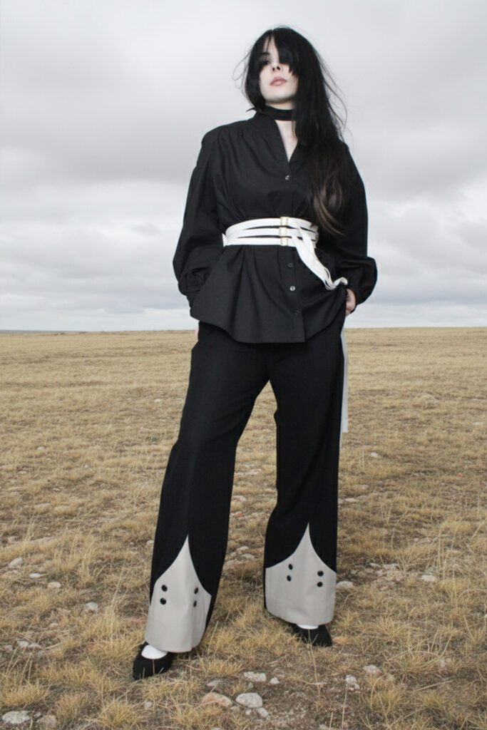 seams cut with precision, forming quiet geometries that move across the body like deliberate thoughts.